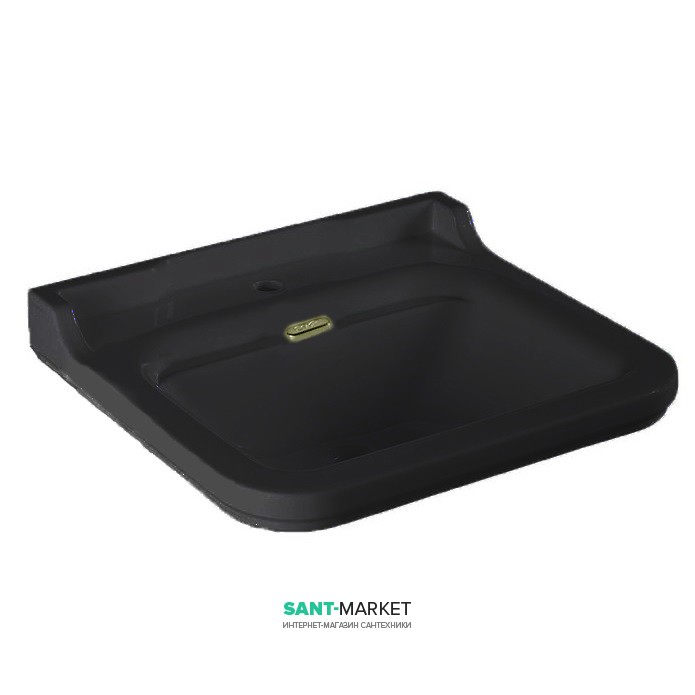 Раковина для ванной подвесная или на пьедестал Kerasan Waldorf 60x55 санфарфор черный глянцевый золото 4140K5
