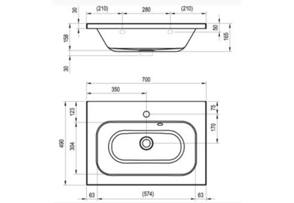 1) Раковина для ванной на тумбу Ravak Chrome 700 с одним отверстием для смесителя белая