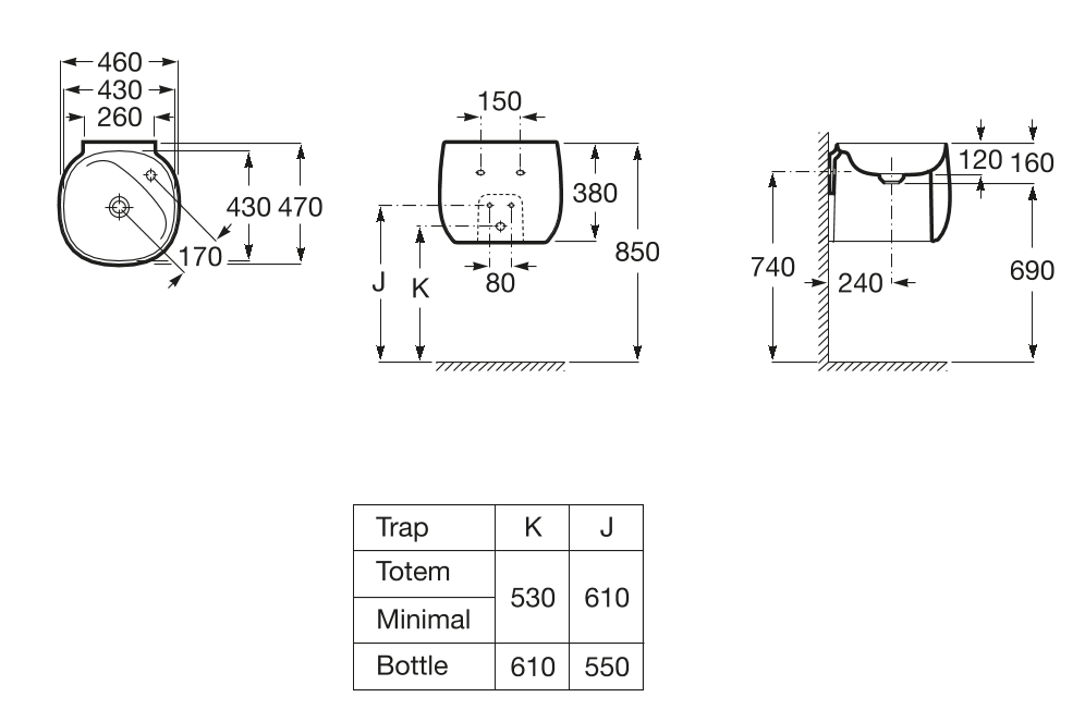 - Ширина чаши (мм): 460