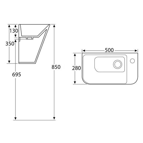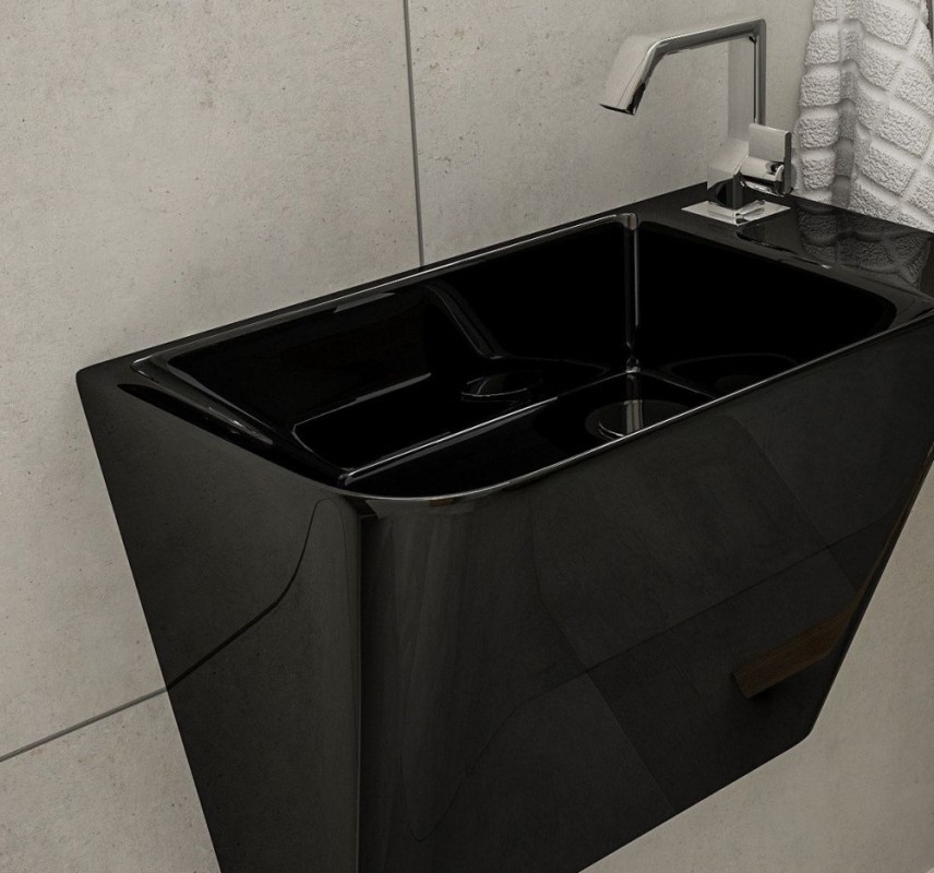 1) Раковина для ванной подвесная Volle Тео 50х28 см керамика черная