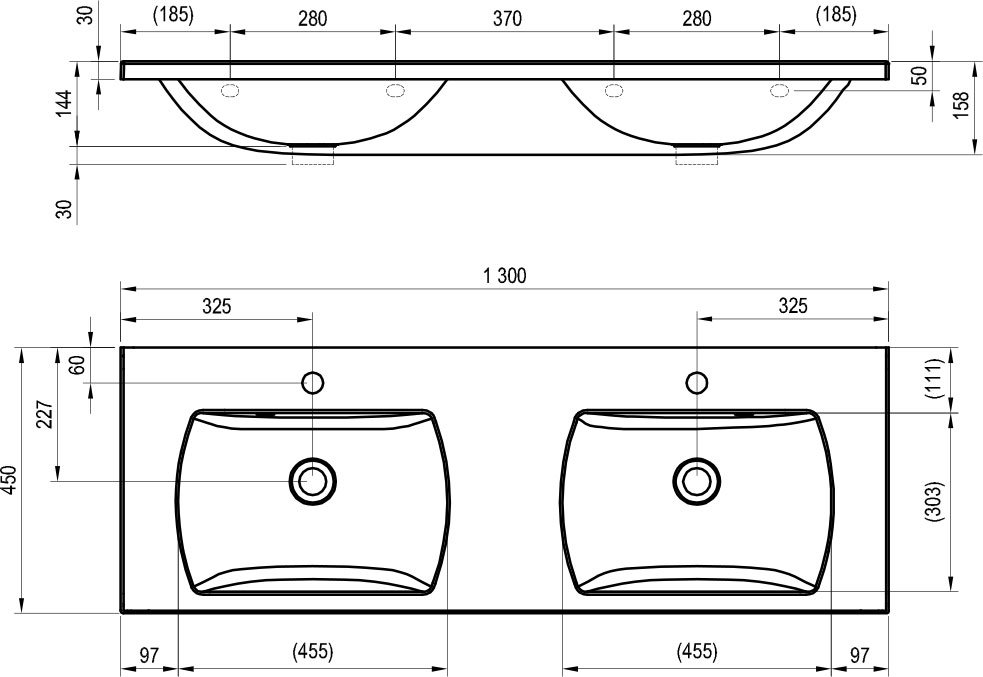 Раковина для ванной Ravak Classic II двойная 130х45 см литой мрамор белый