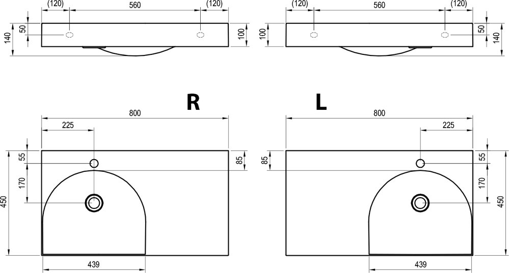 Раковина для ванной Ravak Lite 80х45 см L с отверстием литой мрамор белый XJXL1280000