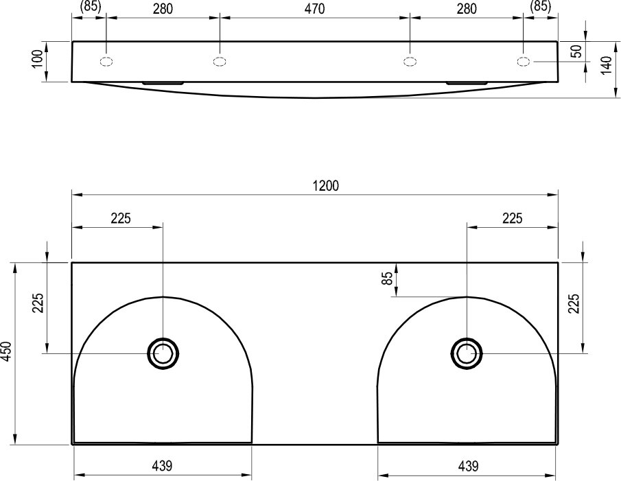 Раковина для ванной Ravak Lite двойная 120х45 см литой мрамор белый XJX01312001