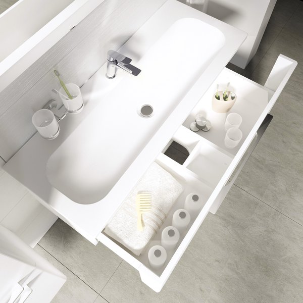 Умывальник Ring не обременит Вас сложной задачей, с чем же его можно скомбинировать, поскольку идеально сочетается со шкафчиком и вместе с ним образует универсальное единое целое для ванной комнаты любого стиля.