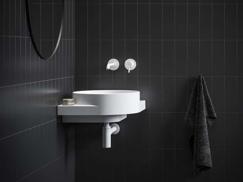 Все, что вам нужно, находится в пределах досягаемости, но умело спрятано за краем умывальника. Щетки, диспенсеры и другие мелкие предметы так легко исчезают и не нарушают эстетического впечатления от ванной комнаты. Кроме того, размещенные предметы никогда не будут падать в умывальник.