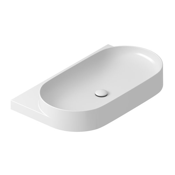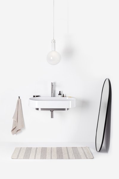 Овальная раковина дополняется элементом дизайна в виде кронштейна белого цвета, черного или из нержавеющей стали. Магия элегантности объединяет в один тон сочетание кронштейна, смесителя, сифона и слива.