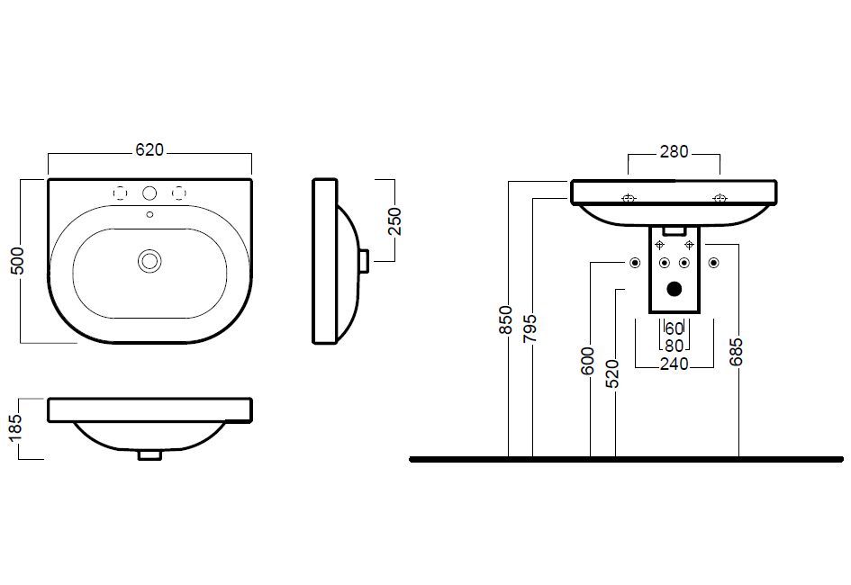 Раковина Hatria Daytime 62 Y0YT01, одно отверстие для смесителя, устанавливается на полупьедестал Y0YM (заказывается отдельно), размер 62х50 см, цвет белый. Крепление для раковины в комплекте.