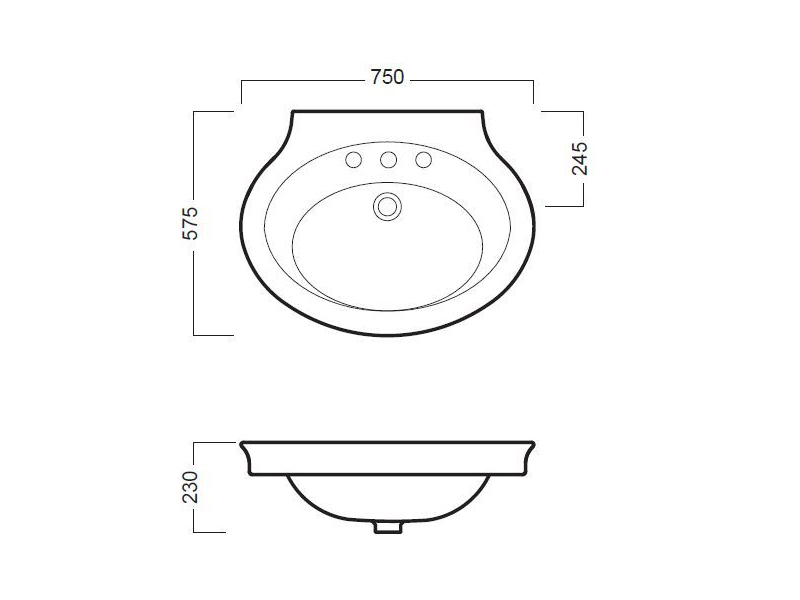 - Раковина с отверстием перелива, поставляется под смеситель на одно, по запросу на три отверстия.