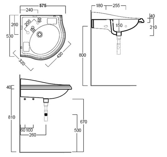 - Отверстие под смеситель: с 1 отверстием и двумя намеченными под смеситель на 3 отверстия