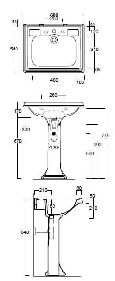 1) Раковина для ванной Simas Arcade подвесная 68х54 см фаянс белый
