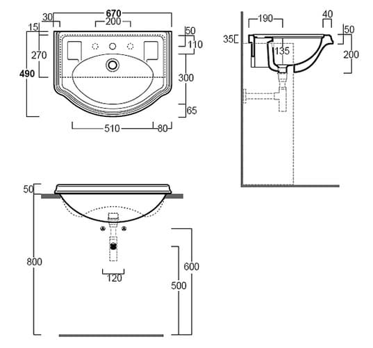 - Отверстие под смеситель: с 1 отверстием и двумя намеченными под смеситель на 3 отверстия