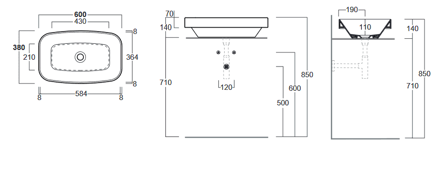 1) Раковина для ванной Simas Baden Baden накладная 60х38 см фаянс белый