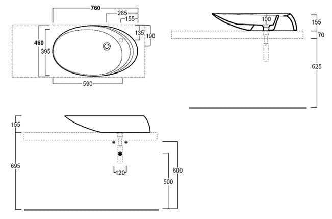 1) Раковина для ванной Simas Bohemien накладная 76х46 см фаянс белый