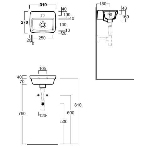 1) Раковина для ванной Simas Evolution подвесная 31х27 см фаянс белый