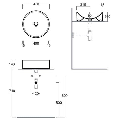 1) Раковина для ванной Simas Flow накладная Ø 43 см фаянс белый