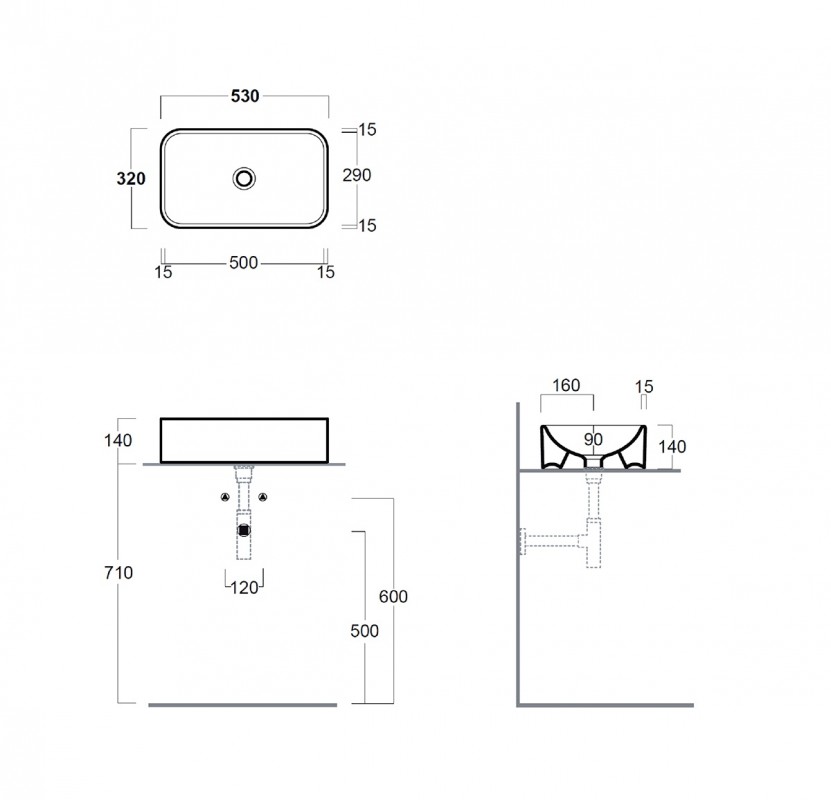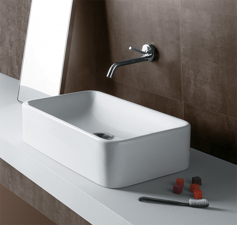 1) Раковина для ванной Simas Flow накладная 53х32 см фаянс белый
