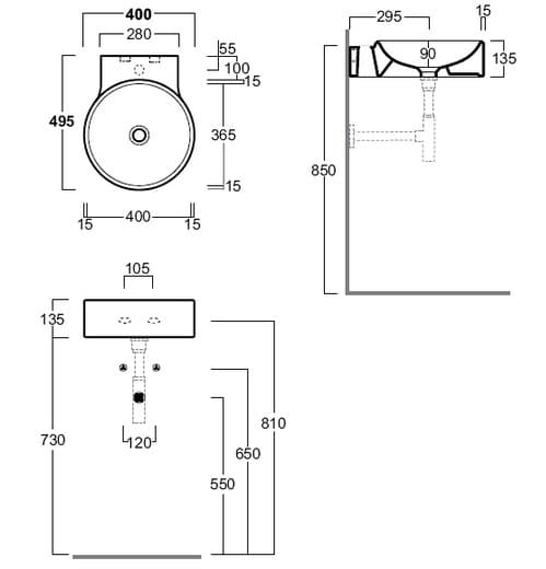 1) Раковина для ванной Simas Flow подвесная Ø 40 см фаянс белый