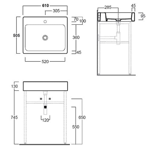 - Отверстие под смеситель: 1 намеченное центральное отверстие