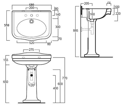 1) Раковина для ванной Simas Londra на пьедестал 68х51 см фаянс белый
