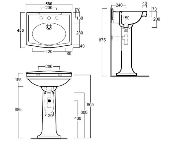 1) Раковина для ванной Simas Londra на пьедестал 58х45 см фаянс белый
