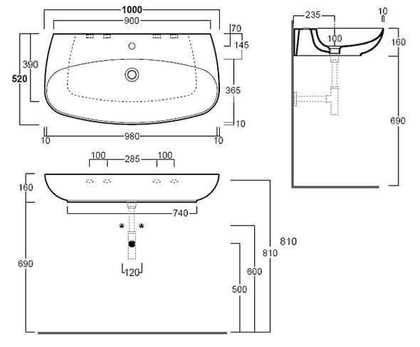 1) Раковина для ванной Simas Vignoni накладная/подвесная 100х52 см фаянс белый