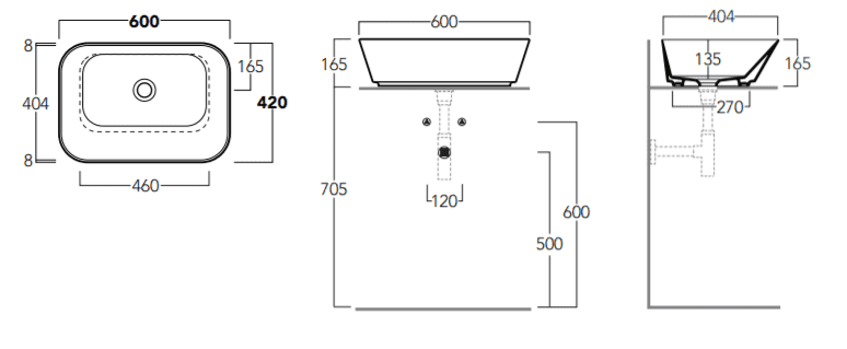 1) Раковина для ванной Simas Wave накладная 60х42 см фаянс белый