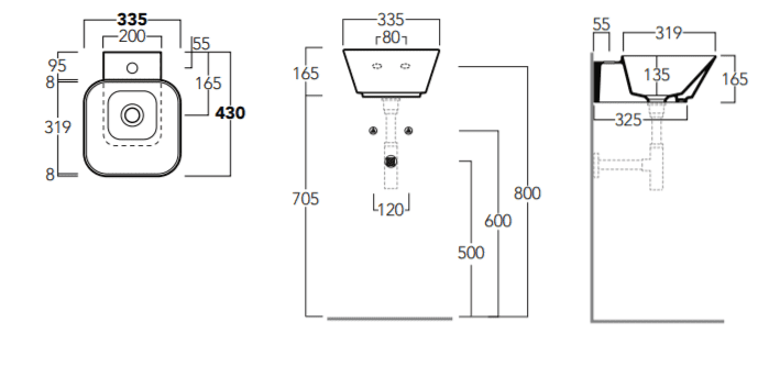 1) Раковина для ванной Simas Wave накладная/подвесная 33,5х43 см фаянс белый