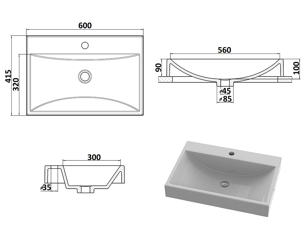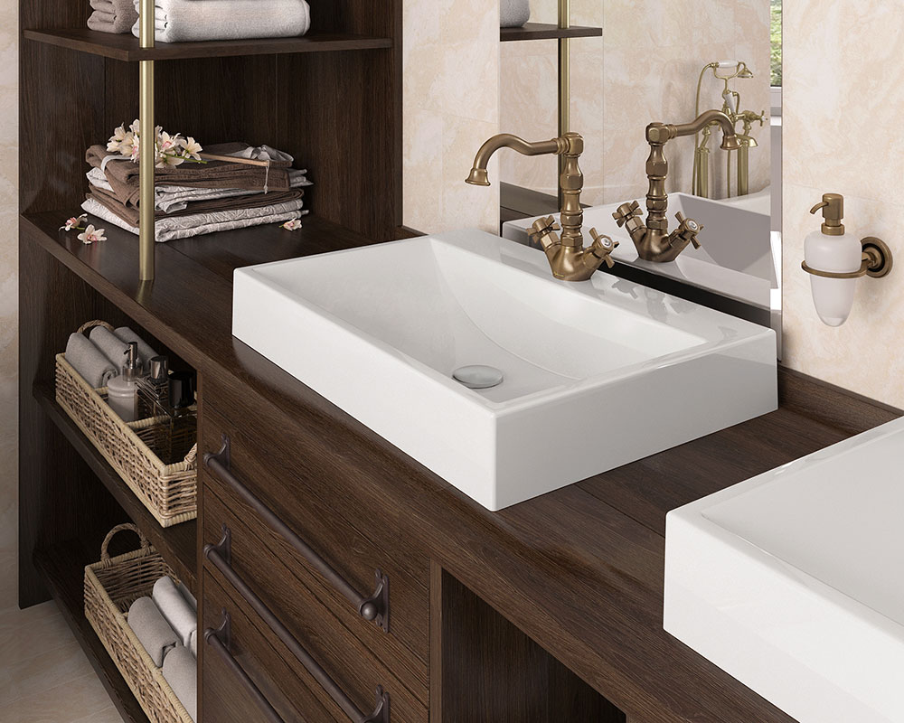 Прямоугольная раковина «Гранд» – великолепное решение для ванной комнаты, оформленной в строгом деловом характере. Он может располагаться на столешнице, что является сейчас модным трендом, может устанавливаться на тумбу, а также вешаться на стену с помощью кронштейнов. Такой умывальник всегда смотрится очень стильно, современно и лаконично. Умывальники таких форм больше используют при оформлении санузлов в рамках минималистического направления.
