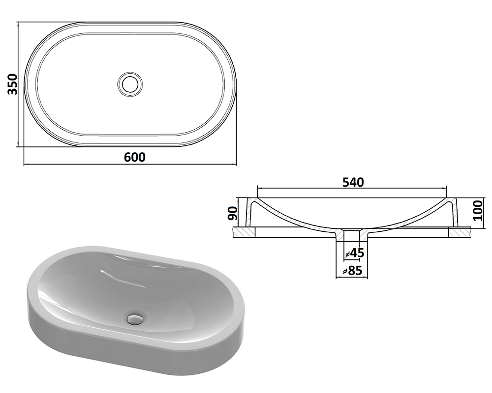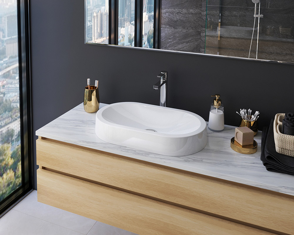 Раковина для ванной Snail Олимпия 60х35 см литьевой мрамор белый 150