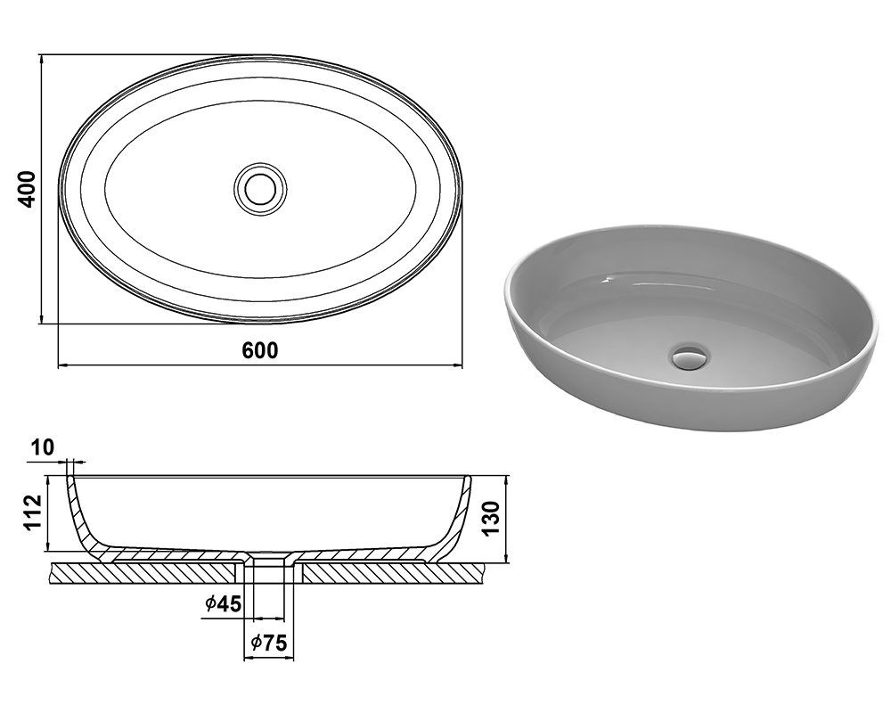 Раковина для ванной Snail Парадиз 60х40 см литьевой мрамор белый