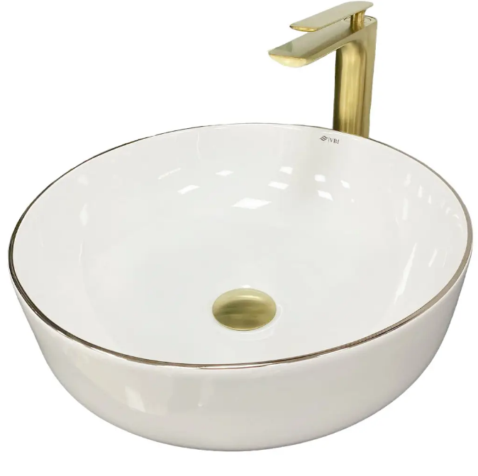 Накладные раковины серии VBI BARI пользуются высоким спросом и доступны в разных цветах в глянцевом или матовом исполнении. Изящный ободок с прямыми стенками и деликатное закругление у основания придают раковине легкости. А идеальная круглая форма раковины усиляет непревзойденный вид. Модель VBI BARI S WHITE GOLD EDGE – выполнена в белом цвете, а глянцевое покрытие отражает свет, придавая яркости.