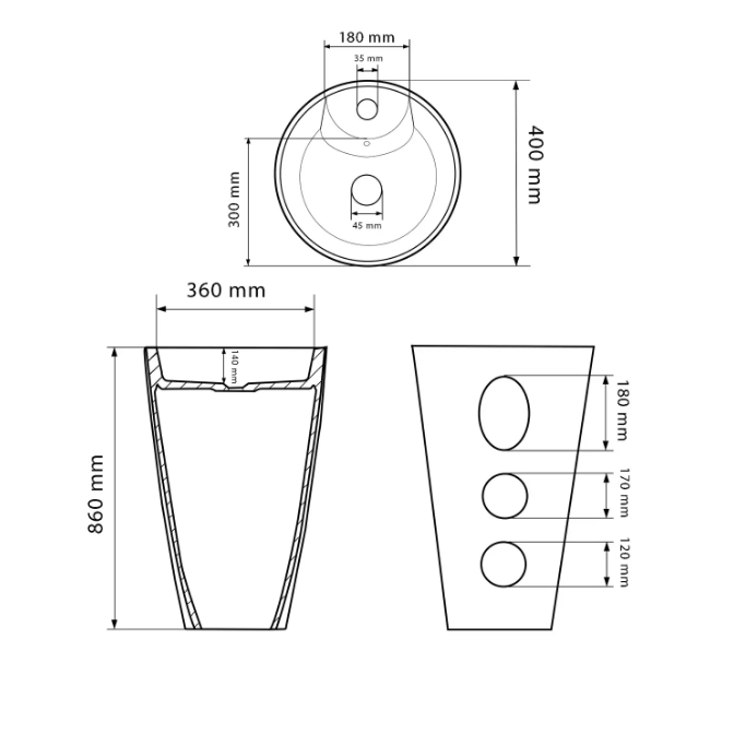 Отдельностоящая раковина из коллекции Bolonia поражает своим круглым профилем, сверху вниз она будто немного сужается, что придает раковине легкости. Умывальник станет центральным элементом ванной комнаты и придаст ей выразительный вид.