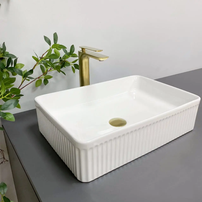 Накладные раковины серии VBI BRESCIA пользуются высоким спросом и доступны в разных цветах в глянцевом или матовом исполнении. Раковина прямоугольной формы, гладкая внутри, а снаружи имеет рифленую текстуру, придающую современный вид. Предназначена для установки на столешницу и изготовлена из высококачественной керамики. Модель VBI BRESCIA WHITE – выполнена в белом цвете с глянцевым покрытием.