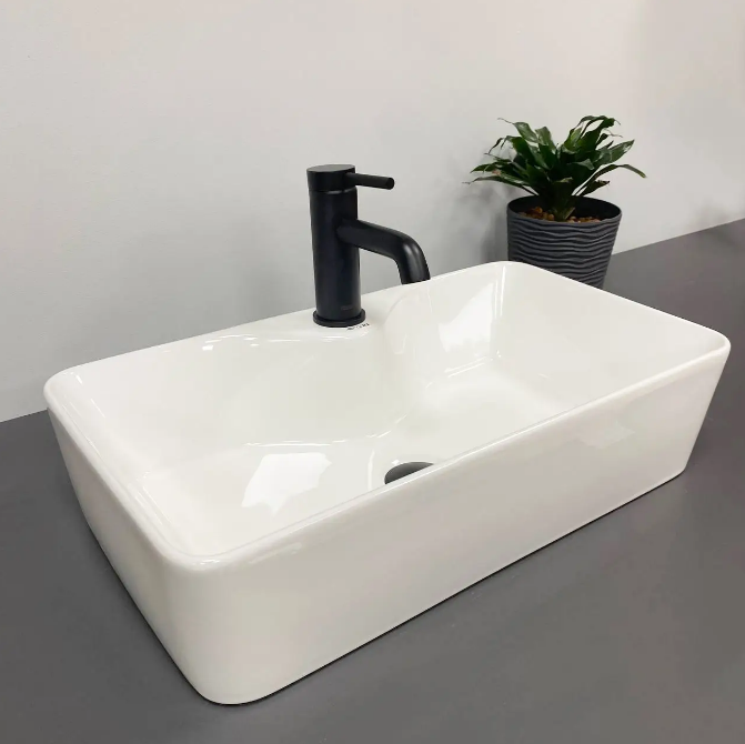 Накладные раковины VBI FORLI пользуются высоким спросом и в разных размерах. Накладная по способу установки раковина имеет отверстие для смесителя, что позволяет сэкономить драгоценное пространство в ванной комнате. Раковина имеет квадратную форму с закруглениями. Это позволяет подобрать смесители, как круглой, так и квадратной формы.
