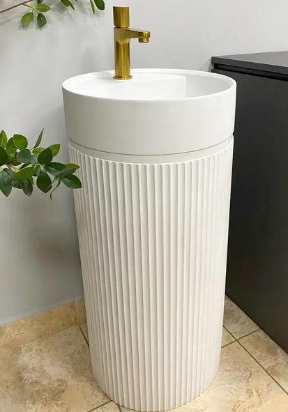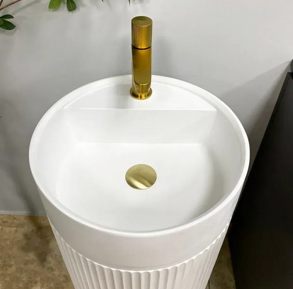 Раковина для ванной VBI Mirano напольная ⌀39 см искусственный камень белый матовый