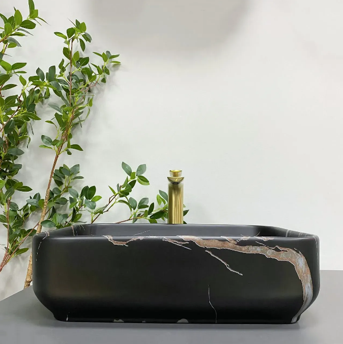 Накладные раковины серии VBI PALERMO пользуются высоким спросом и доступны в разных цветах в глянцевом и матовом исполнении. Классический дизайн с идеальной прямоугольной формой, смягчающийся скругленными углами и тонкими линиями. Модель VBI PALERMO BLACK STONE - имеет уникальный узор.