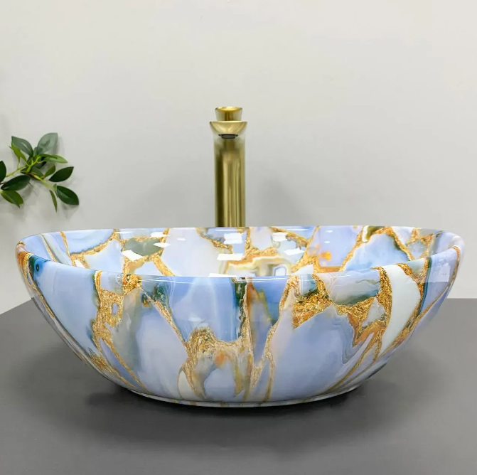Раковина для ванной VBI PARMA 41,5x33,5 см керамика мрамор синий глянцевый