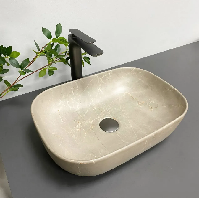 Раковина для ванной VBI RAVENNA 46x32,5 см керамика бежевый камень матовый