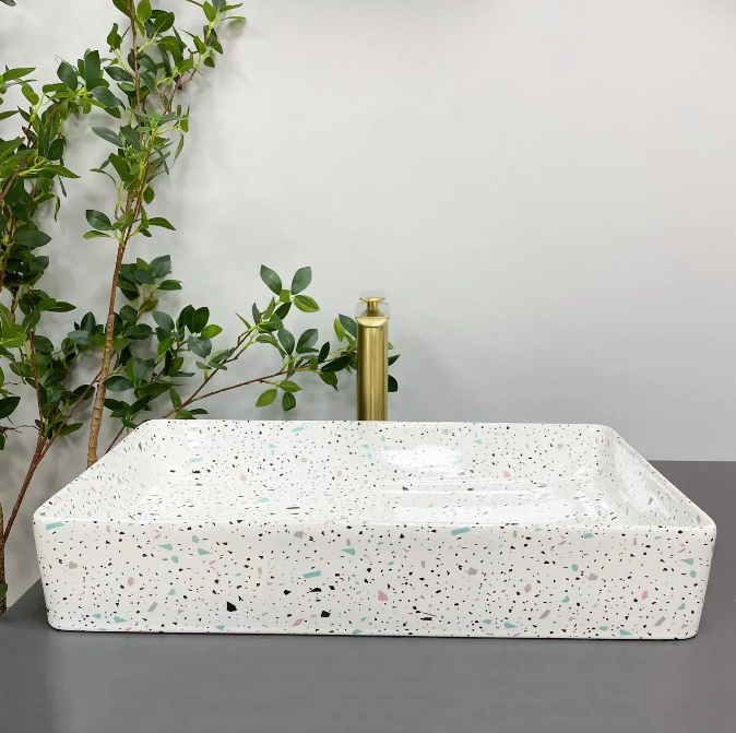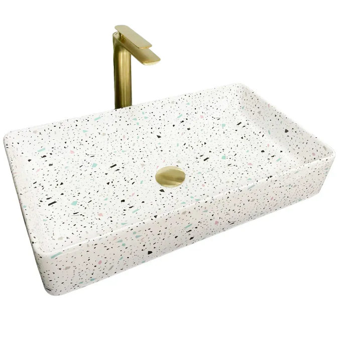 Накладные раковины серии VBI TRIEST пользуются высоким спросом и доступны в разных цветах в глянцевом или матовом исполнении. Идеальная прямоугольная форма и прямые стенки с легкими изгибами внутри создают современный и классический вид. Предназначена для установки на столешницу. Модель VBI TRIEST MOSAIC – имеет уникальный разноцветный рисунок.