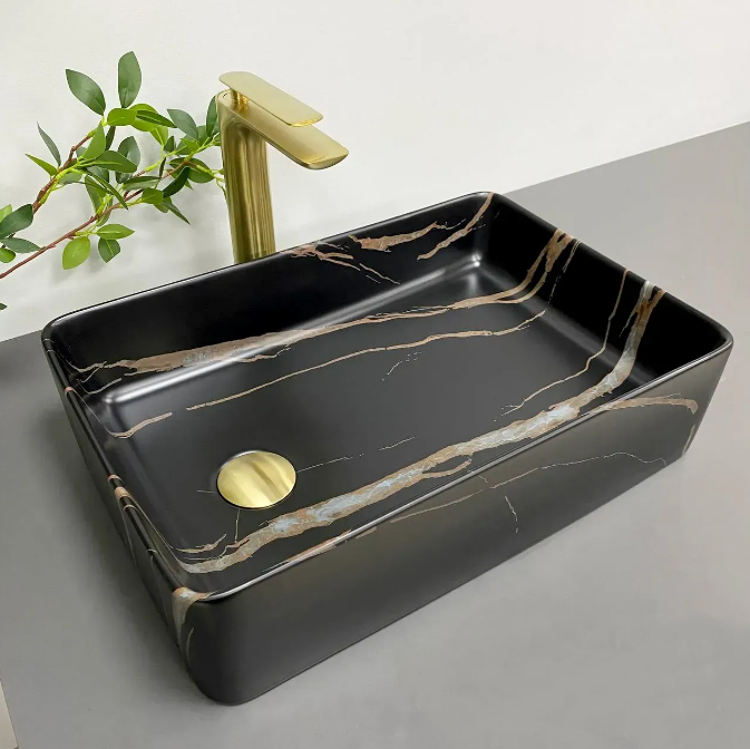 Накладные раковины серии VBI VELLETRI имеют высокий спрос и доступны в разных размерах. Простая прямоугольная форма и четкие прямые стенки - идеально дополнят любой дизайн ванной комнаты. Сливное отверстие смещено к краю раковины. Изготовлена из высококачественной керамики и предназначена для установки на столешницу. Модель VBI VELLETRI BLACK STONE - исполена в черном цвете с уникальным узором и матовым покрытием.