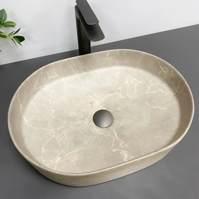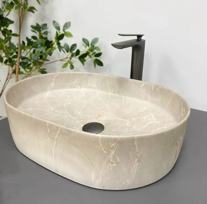 Накладные раковины серии VBI VERONA пользуются высоким спросом и доступны в разных размерах и цветах в глянцевом или матовом исполнении. Накладная по способу установки раковина имеет классическую овальную форму с четкими линиями. Это позволяет подобрать смеситель, как круглой, так и квадратной формы. Модель VBI VERONA 50 BEIGE STONE MATT – имеет уникальный рисунок, а матовое покрытие придает общий шарм.