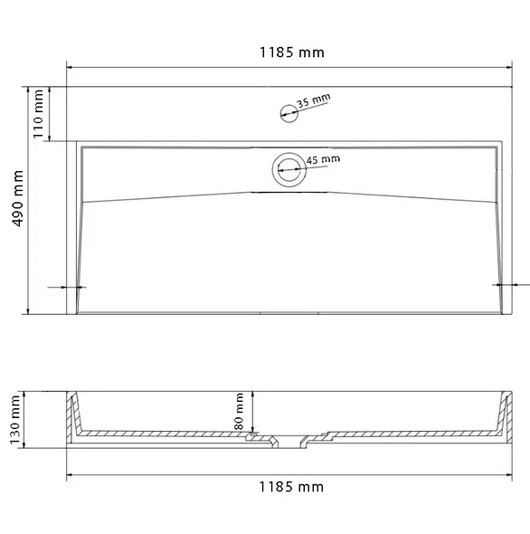 Раковина для ванной VBI Vieste 118,5х49 см искусственный камень серый матовый