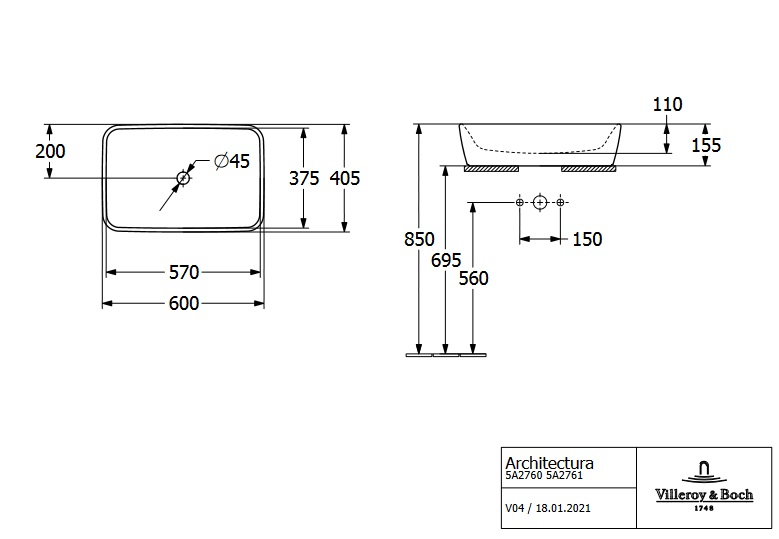 Керамика для ванной из коллекции Architectura Villeroy & Boch привлекает классическим минималистичным дизайном и высокой функциональностью. Предлагаются раковины разных форм и вариантов исполнения — от маленькой раковины до раковины на столешницу.