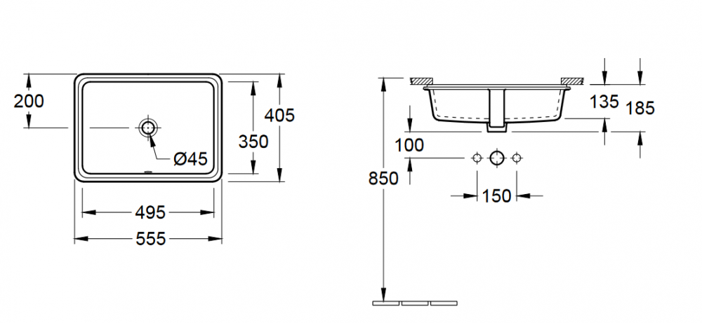 Раковина для ванной Villeroy&Boch Tube 49,5х35 см под столешницу санитарная керамика альпийский белый 41525001