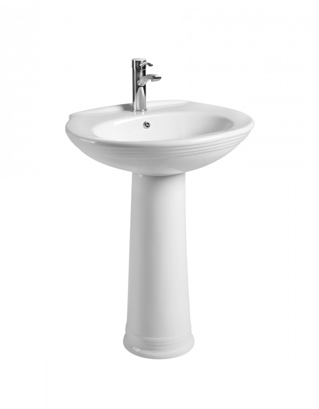 Подвесная, овальная раковина c пьедесталом Barco 13-88-602 от Volle имеет габаритные размеры (ВхШхГ) 84 x 64 x 52 см и поставляется с отверстием для установки смесителя (приобретается отдельно) и с переливным отверстием.
