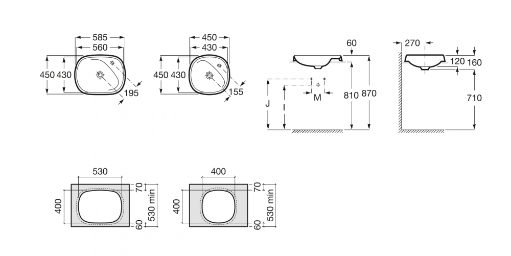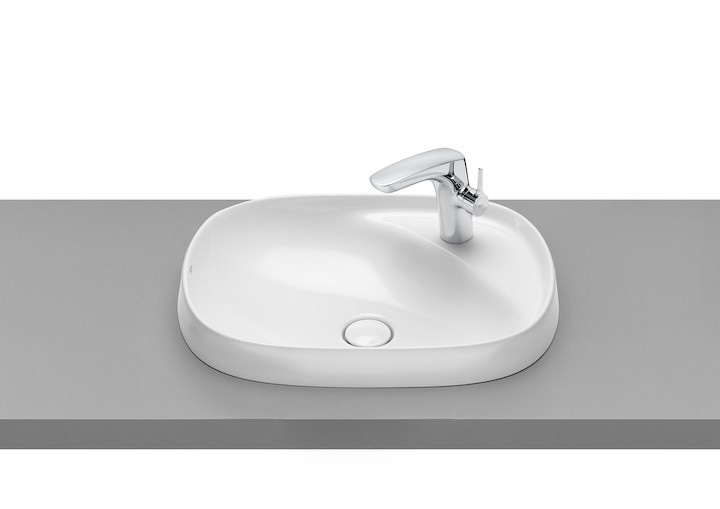 1) Раковина для ванной врезная Roca Beyond 58.5х45 с отверстием под смеситель FINECERAMIC белая
