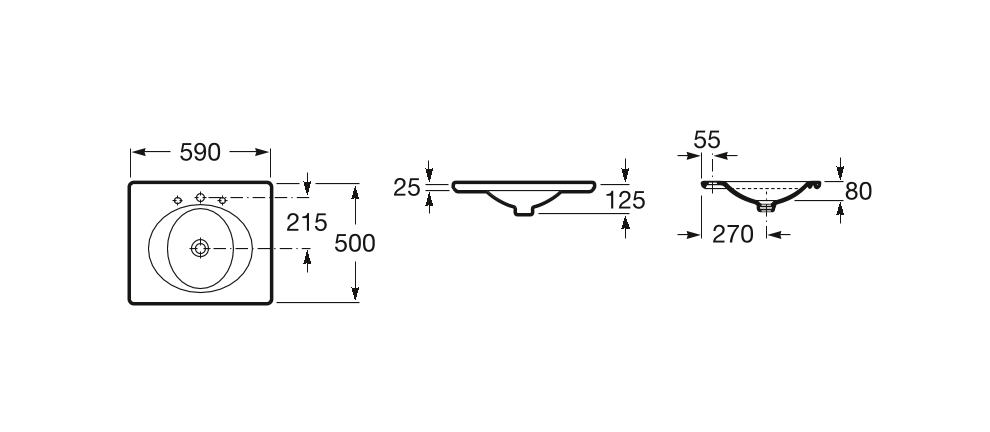 1) Раковина для ванной врезная Roca Kalahari 59х50 см с отверстием для смесителя керамика белая