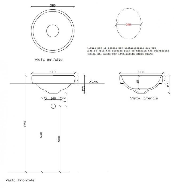 1) Раковина для ванной Galassia Ergo врезная круглая без отверстия перелива белый