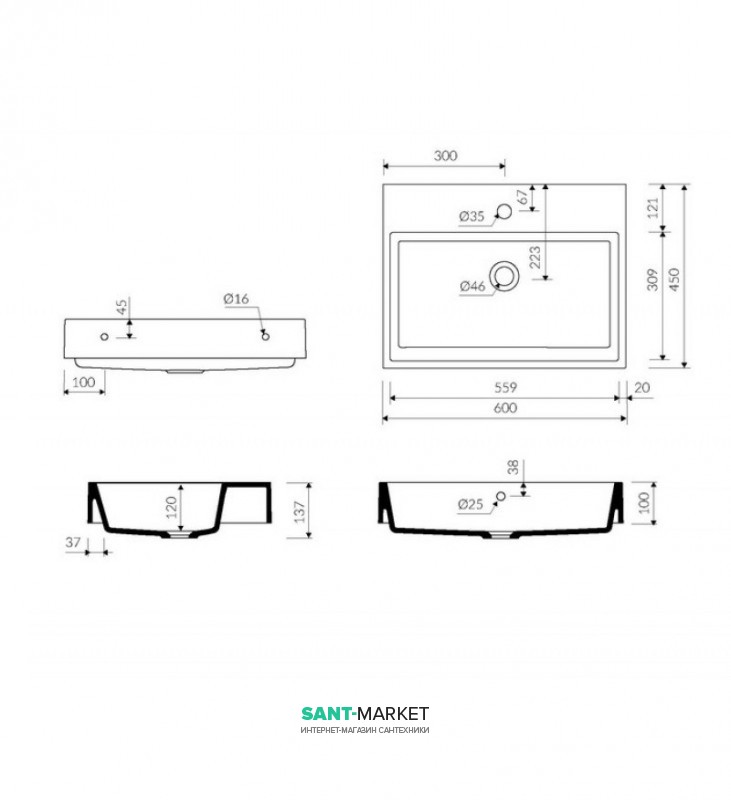 Раковина для ванной накладная Marmorin коллекция Teo белая 641 060 0xx xx x