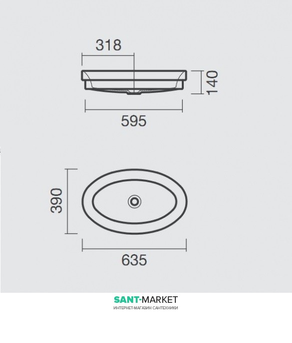 Раковина для ванной встраиваемая Sanitana коллекция Ovalo белая CILE3E1E